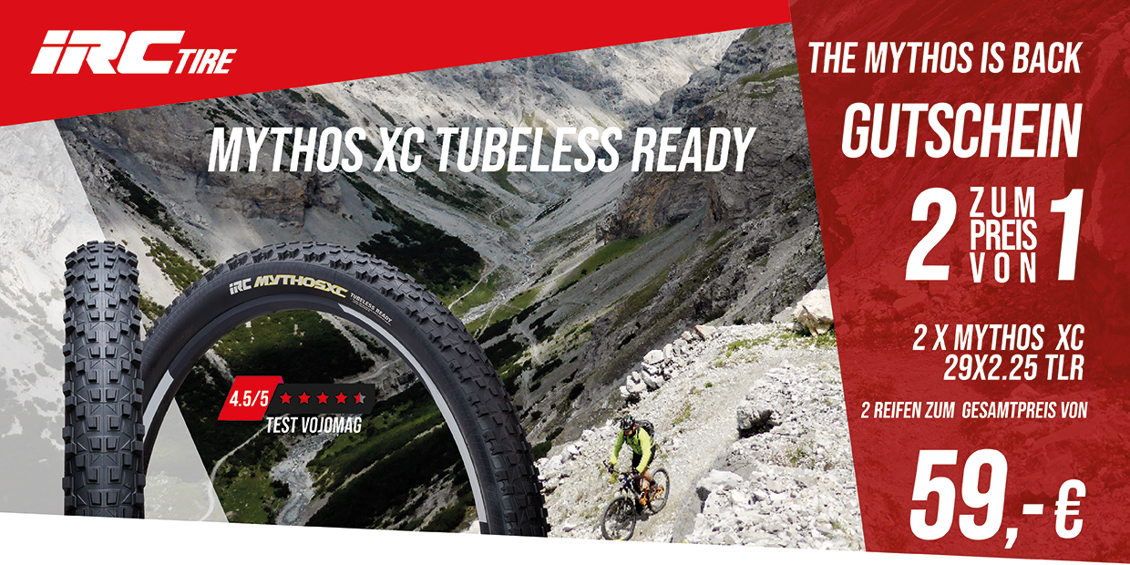 Wir suchen für IRC drei Testfahrer, die ein Mythos-Reifenset bei den nächsten Rennen testen wollen! Einfach eine Mail mit Name, Adresse und ein paar persönlichen Zeilen bzw. den geplanten Rennen an mail@mountainbike-challenge.de senden.einklappen